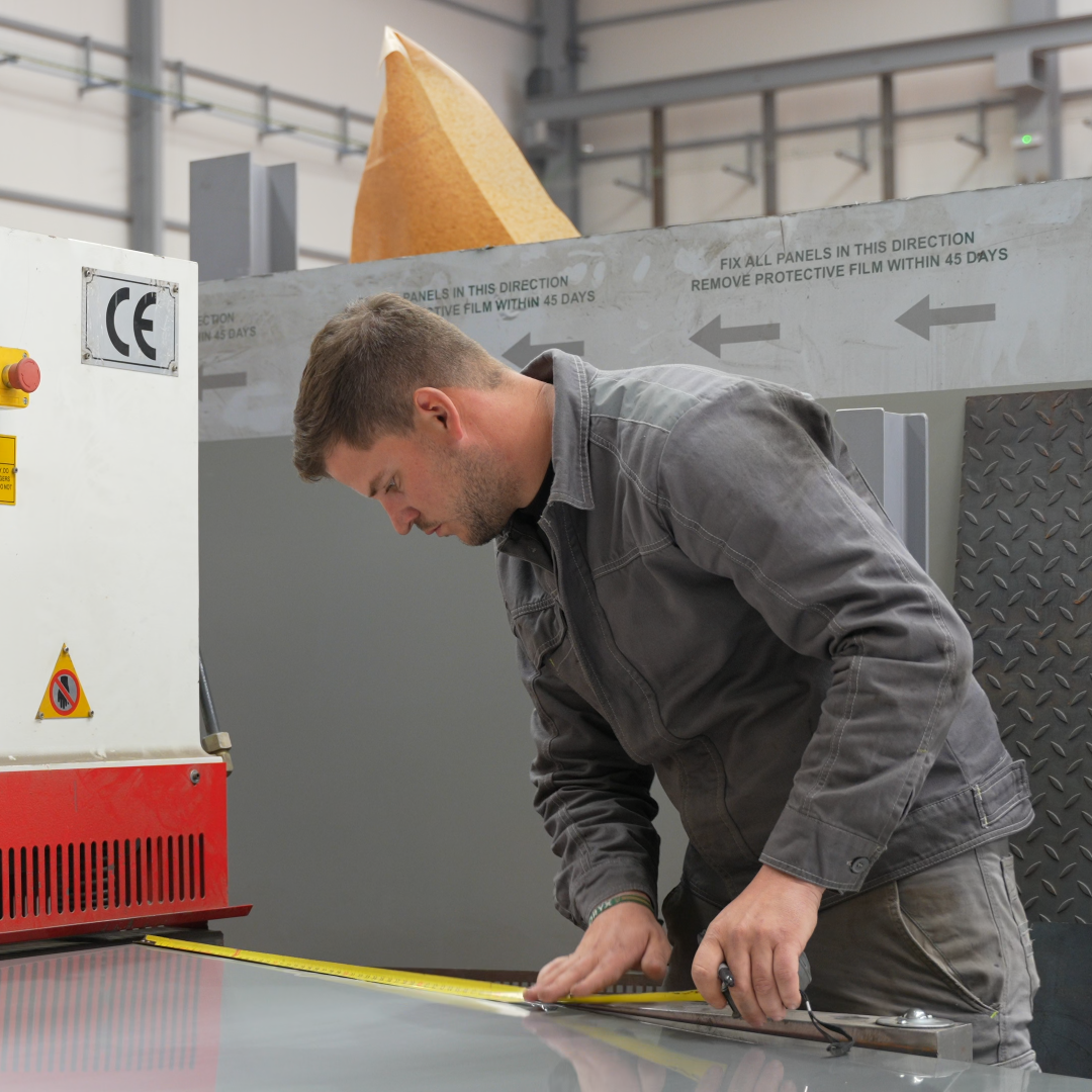 Contamos con tecnología de vanguardia, incluyendo máquinas de corte láser, plegadoras CNC, soldadura especializada y equipos de montaje con grúas, lo que nos permite ofrecer precisión y rapidez en cada fabricación.